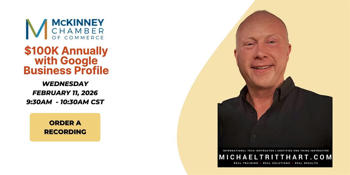 McKinney Chamber of Commerce is pleased to sponsor this Michael Tritthart Small Business Building Workshop: