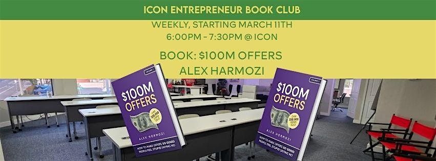 Join a group of local entrepreneurs every Wednesday from 6:00–7:30 pm at ICON Industries Training & Collaboration Center to read and apply $100M Offers: How To Make Offers So Good People Feel Stupid Saying No by Alex Hormozi.