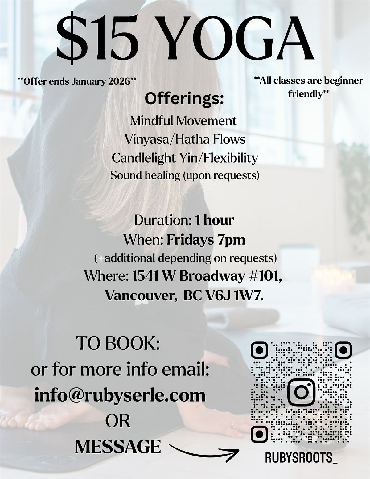 Each week we will alternate between Vinyasa/Hatha flow and Candlelight Yin.