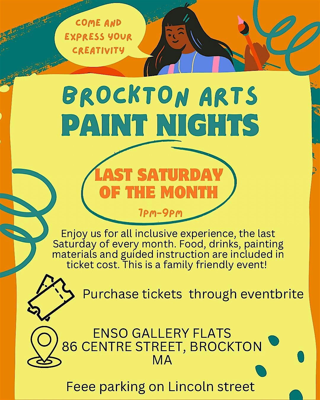 Come join us for a fun and creative evening at Gallery @ Enso Flats! Get ready to unleash your inner artist as you paint your masterpiece with the guidance of talented instructors from Brockton Arts Inc. No experience is necessary - just bring your creativity and we'll provide all the materials you need. Whether you're a seasoned painter or a first-timer, this event is perfect for anyone looking to have a great time and create something beautiful. Don't miss out on this exciting opportunity to paint, socialize, and make memories!