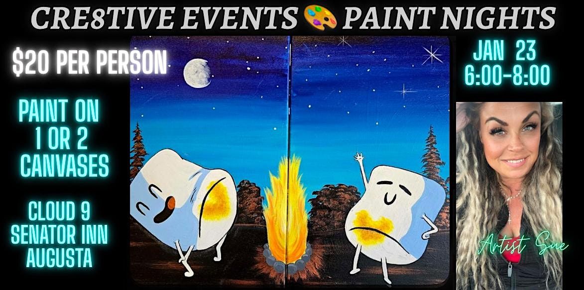 Enjoy a fun creative night out! This painting, one single person can paint it on one canvas OR Two people can paint each half of the picture