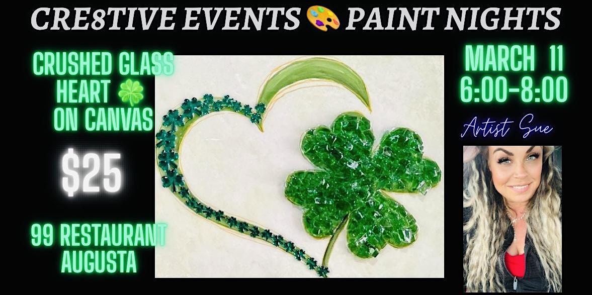 $25 Paint Night - CRUSHED GLASS Shamrock- 99 Restaurant AUGUSTA
