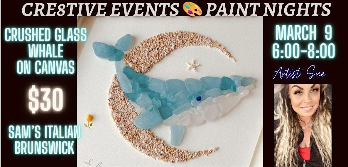 $30 Paint Night - CRUSHED GLASS Whale - sam\u2019s Italian Brunswick