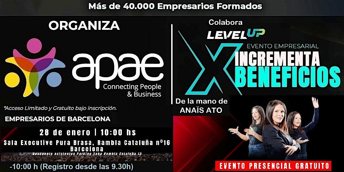 El 28 de enero en Barcelona, vive una mañana transformadora con “Incrementa tus Beneficios”, una formación gratuita con Anaïs Ato, empresaria y formadora con resultados reales. Aprende cómo dejar de competir por precio y empezar a hacerlo por valor, qué decisiones pequeñas generan grandes beneficios, y por qué aún no obtienes los resultados que tu negocio merece (y cómo revertirlo).