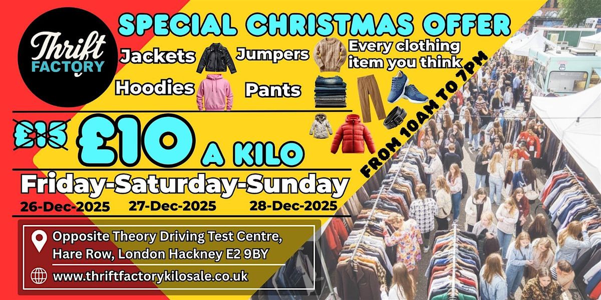 Perfect for East London shoppers looking for a budget-friendly thrift event near Hackney.