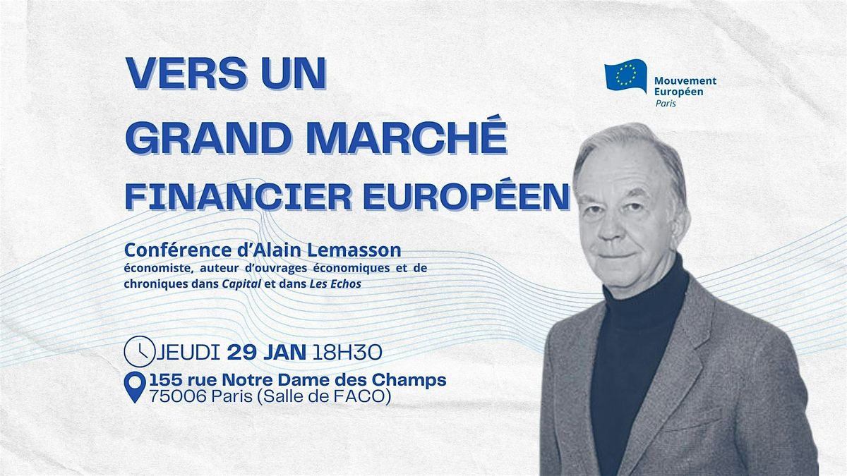 Le Mouvement Européen Paris vous invite pour sa conférence intitulée « Vers un grand marché financier européen : où en est l’Europe ? » avec Alain Lemasson, économiste et auteur d'ouvrages économiques et de chroniques dans Capital et dans Les Echos.