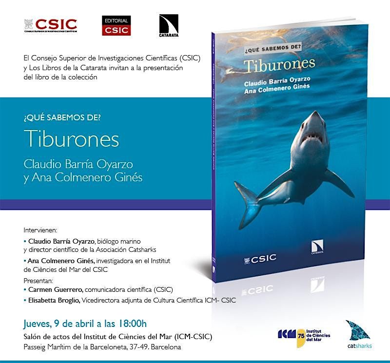 En ella, intervendrán sus autores Claudio Barría Oyarzo, biólogo marino y director científico de la Asociación Catsharks, y Ana Colmenero Ginés, investigadora en el Institut de Ciències del Mar del CSIC.