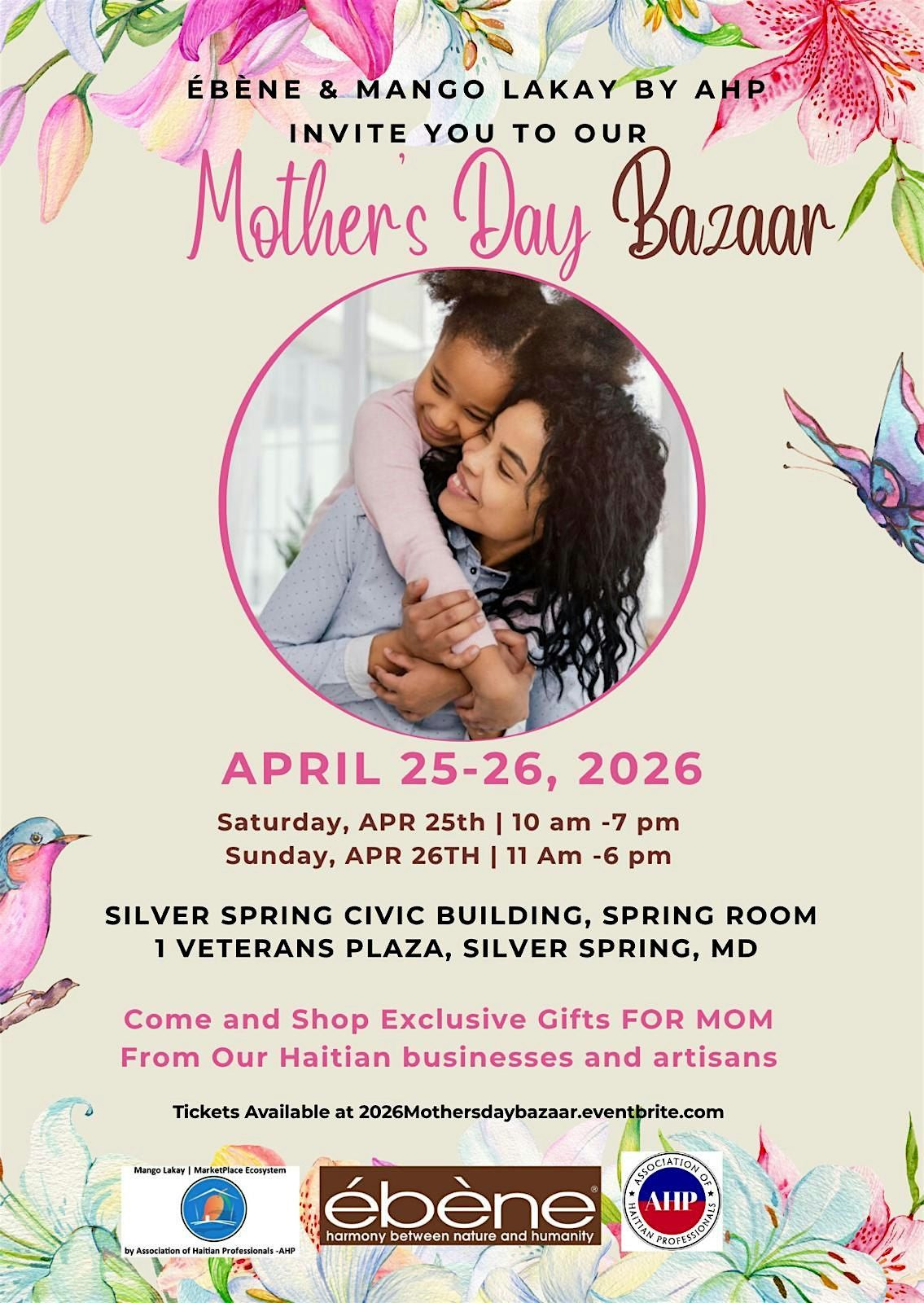 Celebrate Motherhood With Us on April 25th and 26th! As Mother's Day approaches, Ébène and Mango Lakay by AHP is thrilled to announce our 3rd Annual Mother's Day Bazaar, a heartwarming celebration of motherhood and a perfect opportunity to honor the special women in our lives.