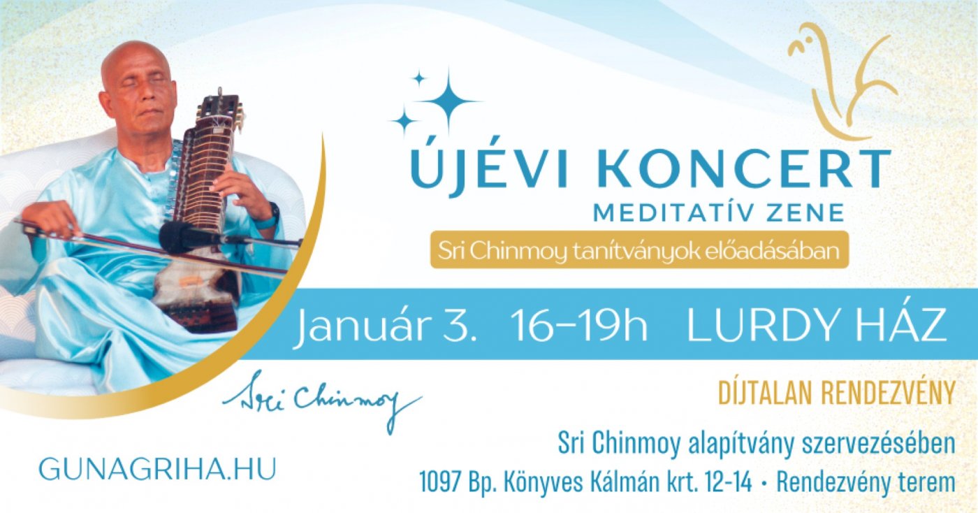 Az újévi Meditatív koncerten Sri Chinmoy lélekteli dallamai magyarországi tanítványok és tanítvány-együttesek előadásában lesznek hallhatók.