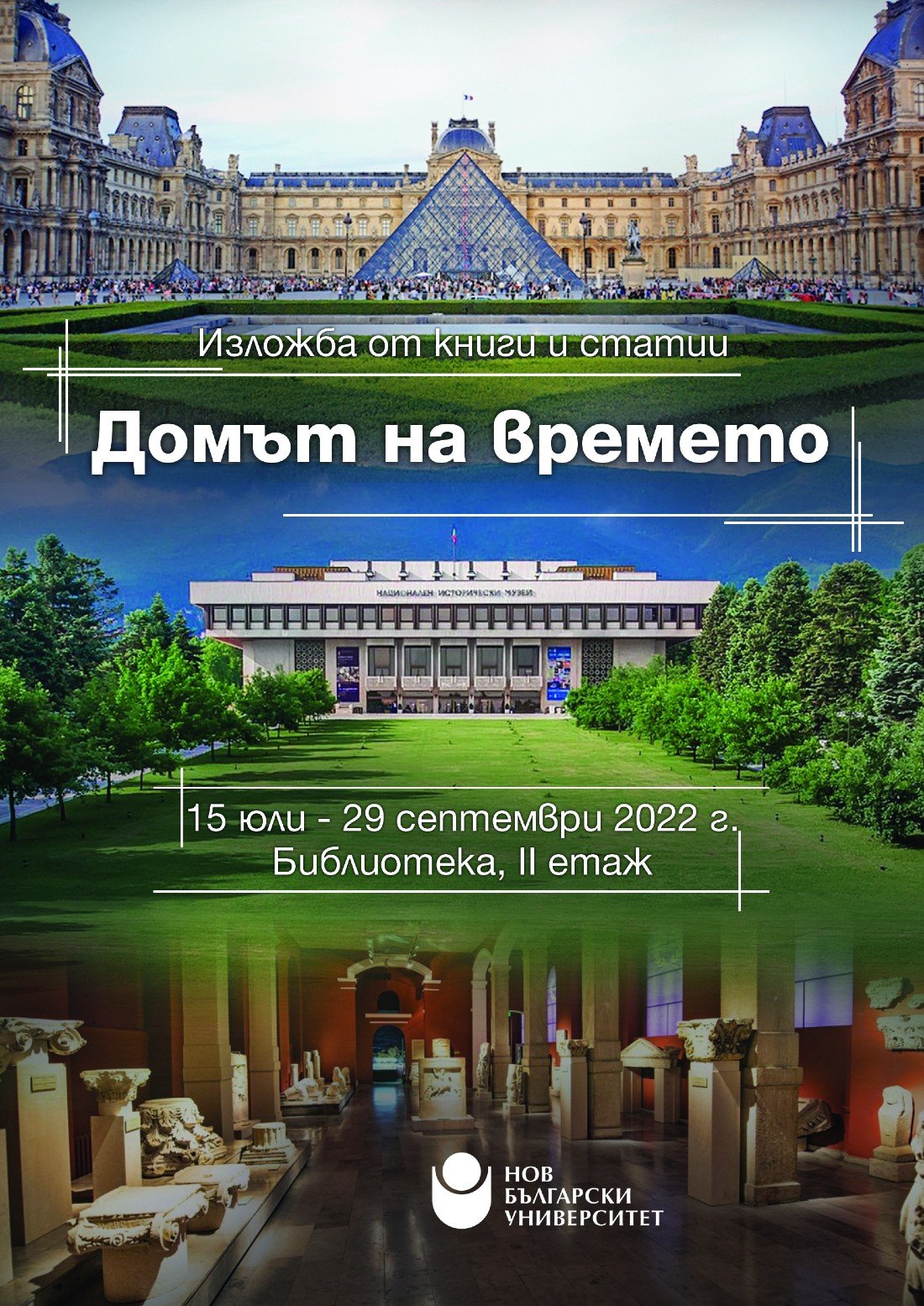 Изложбата „Домът на времето“ представя книги и статии от библиотечните колекции на Нов български университет свързани със забележителни музеи у нас и по света. Целта на Библиотеката е да събуди интерес за разходка в миналото за да открием бъдещето. Музеите са истински „дом на времето“ в който можем да се приютим и „изгубим“ да общуваме с културния социален и екзистенциален опит на отдавна отминали епохи и по този начин да открием и пресъздадем себе си.