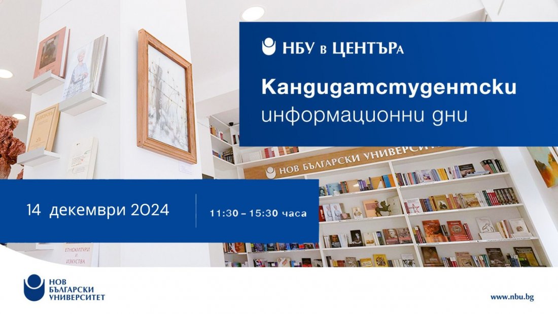 На 14. декември 2024 г. в книжарница и галерия „НБУ в ЦЕНТЪРа“ ще се проведе „Информационен ден за кандидат-студенти“ от 11.30 ч. до 15.30 ч.