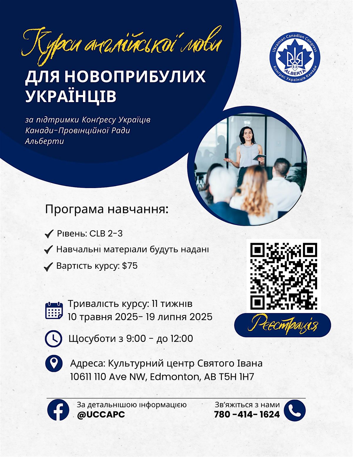 UCC-APC організовує цей курс для українських новоприбулих, які хочуть покращити свої мовні навички та впевненіше користуватися англійською у повсякденному житті.