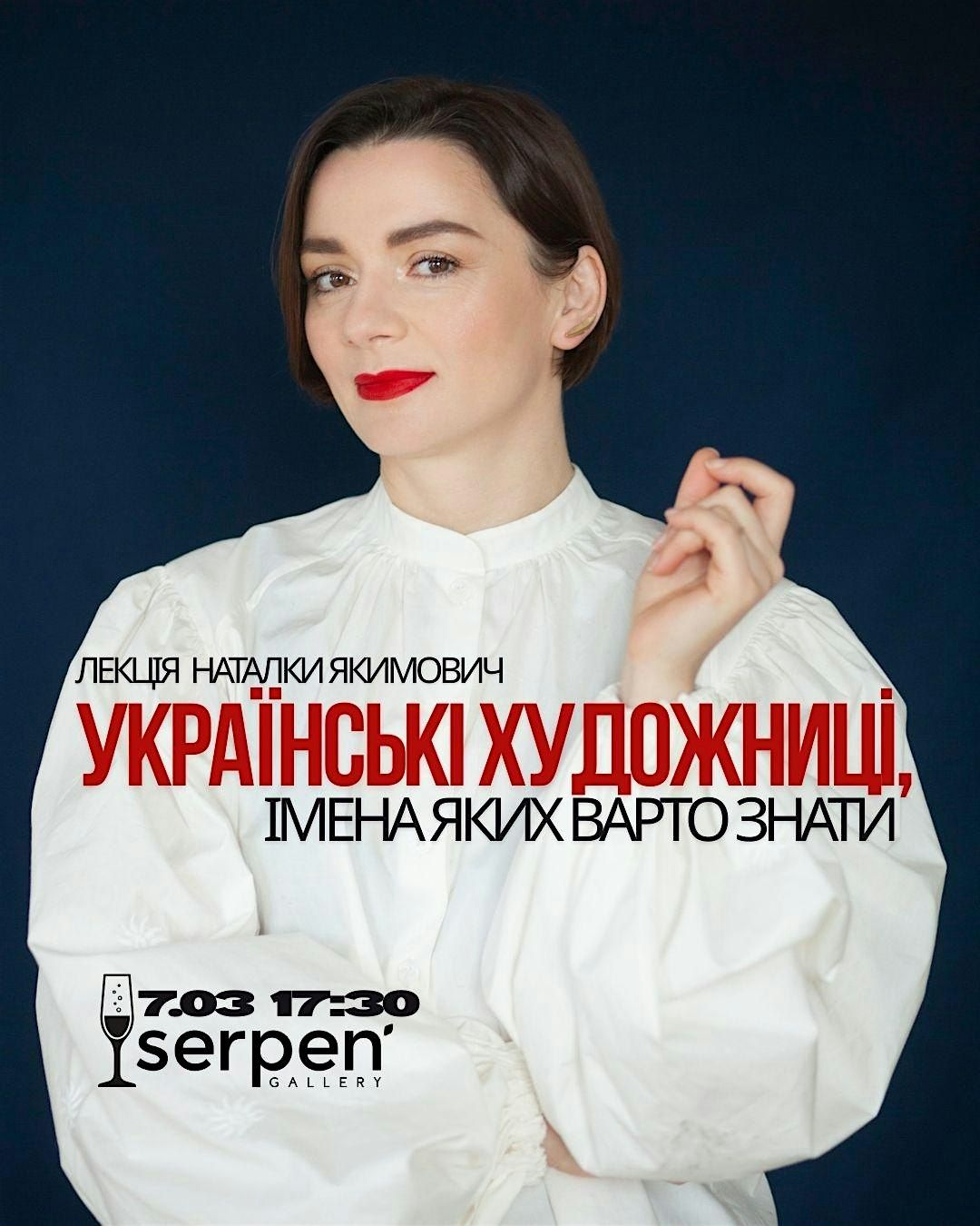 Лекція про українських мисткинь від відомої журналістки та продюсерки, засновниці Serpen Gallery Наталки Якимович. Зустріч з келихом вина