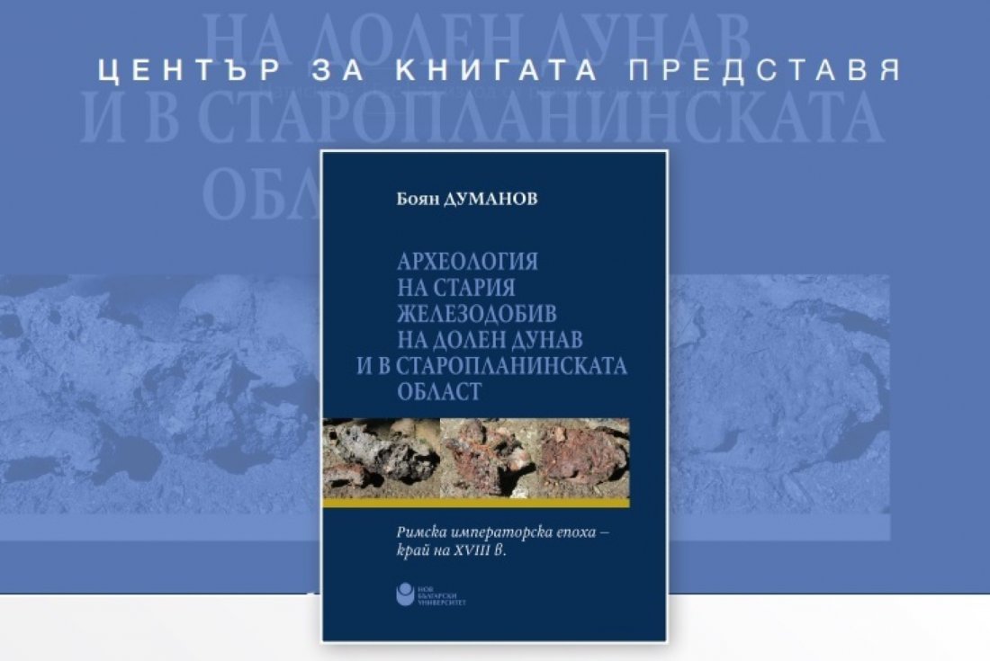 Център за книгата и департамент „Археология“ представят монографията „Археология на стария железодобив на Долен Дунав и в Старопланинската област: Римска императорска епоха - край на XVIII в.“ с автор Боян Думанов на 19. януари 2022 г. от 16.30 ч. в книжарницата на корпус I в Нов български университет.