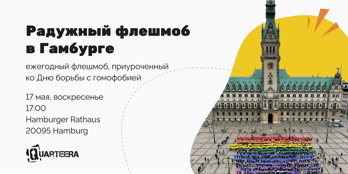 Гамбург отметит день борьбы с гомофобией, трансфобией и бифобией радужным флешмобом на площади перед ратушей. В рамках флешмоба множество горожан поднимают цветные листы бумаги, которые вместе складываются в огромный флаг ЛГБТК+. Это вдохновляющее событие — возможность собраться вместе, пообщаться и поучаствовать в создании яркого символа солидарности, защиты наших прав и взаимной поддержки.