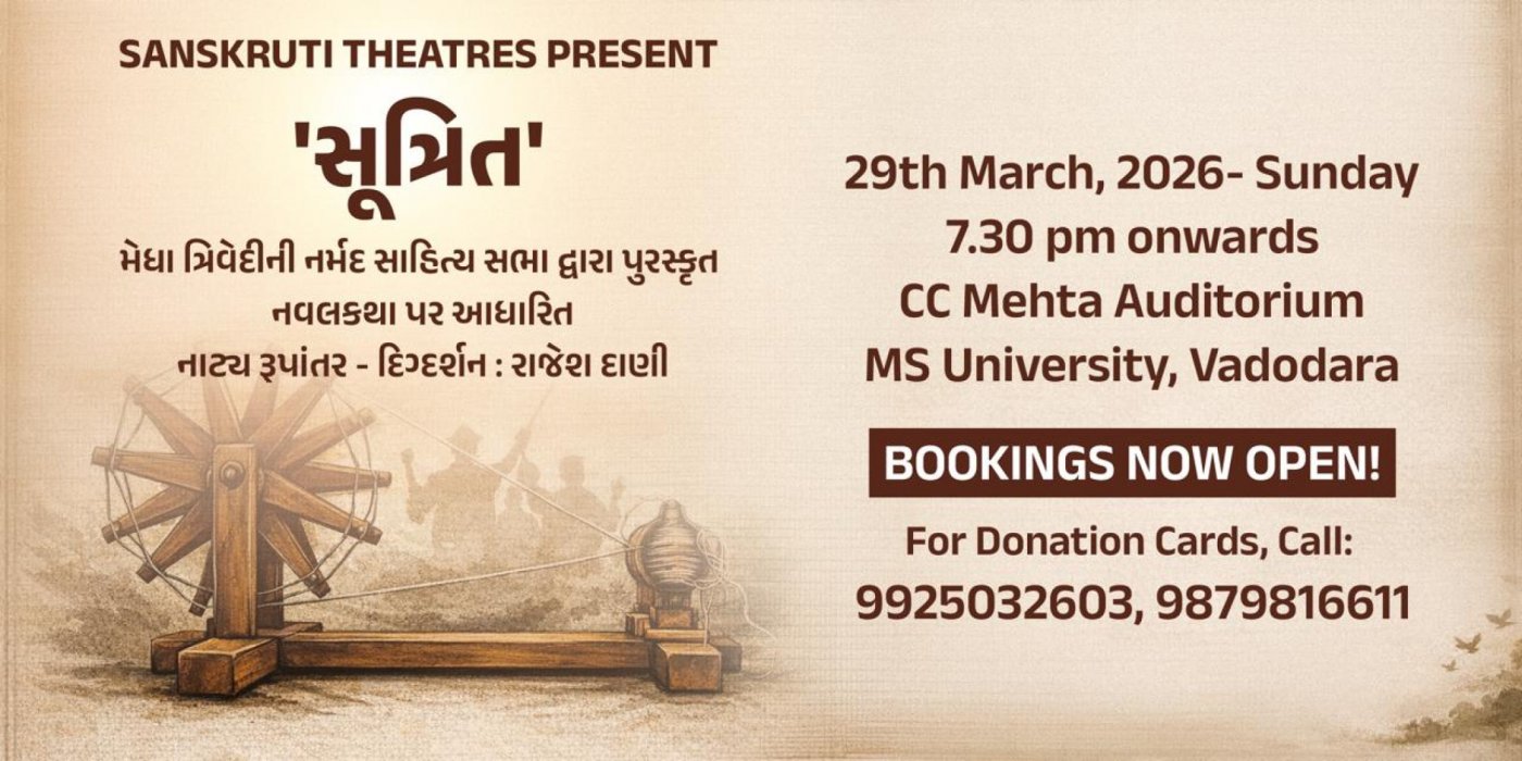 વડોદરાના રંગમંચને વરેલનિષ્ઠવાન કલાકારો સાથે વિશિષ્ટ પ્રકાશ આયોજન, સંગીત અને વેશભૂષા દ્વારા "સુત્રિત" નાટક જોવાલાયક પ્રસ્તુતિ બની રહેશે.