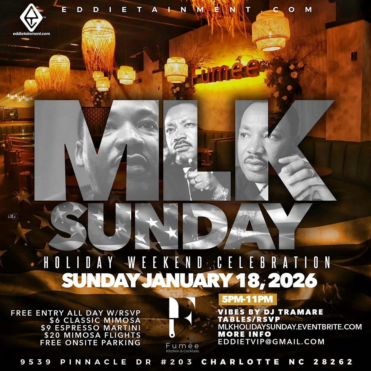 \u2605\u2605 MLK SUNDAY \u2605\u2605 F un\/Food\/Football @Fume\u00e9 w\/DJ Tramare This is the sequel to our Amazing MLK Holiday event at Fumée. Experience great music and LITuations in one of Charlotte's SEXIEST venues!