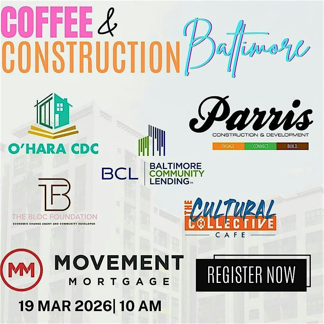 Join us for Coffee & Construction, a dynamic convening that brings together developers, lenders, community partners, and aspiring investors for honest, high-impact conversations about what it truly takes to build and win in today’s market. We're taking you a property tour to see the possibilities in this city of Baltimore.