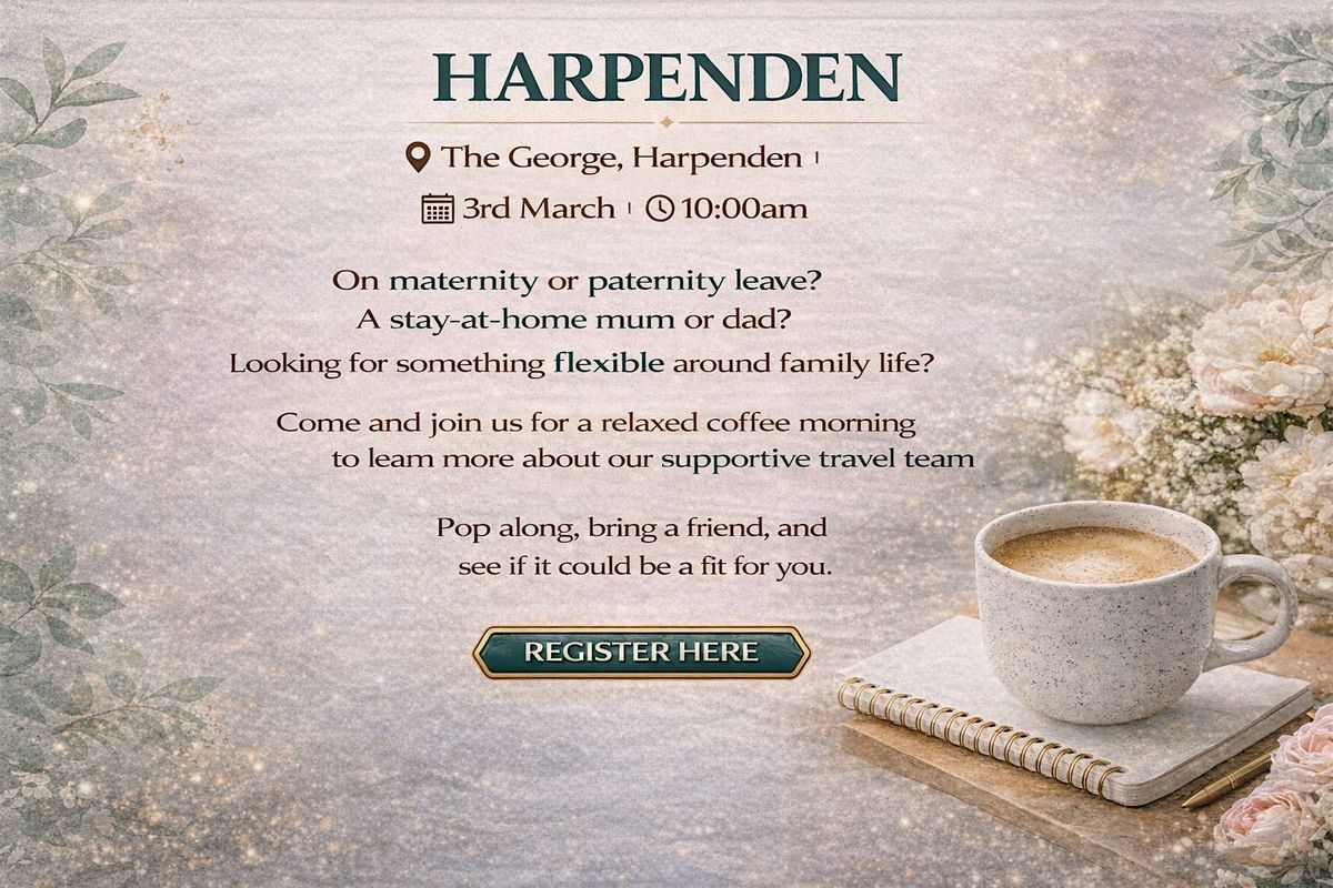 Join us for a relaxed coffee morning to learn more about our supportive travel team and how this opportunity can fit around your lifestyle.
