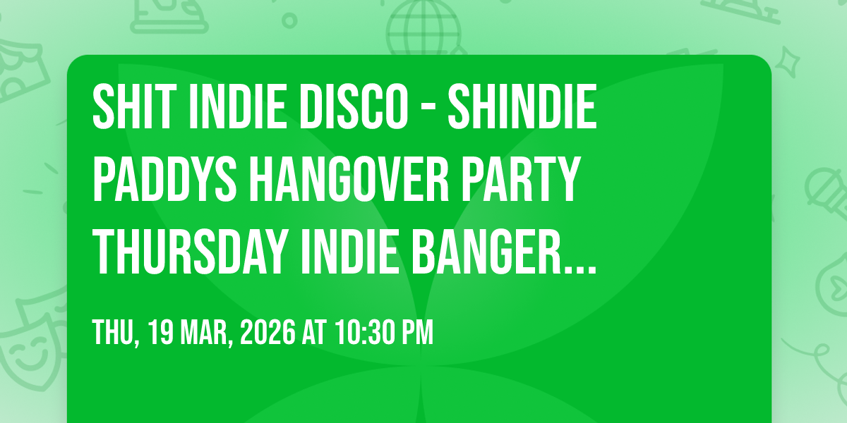 PADDYS WAS A BLAST!!! EVERYONE JUST ABOUT FEELING NORMAL AFTER IT, SO THE BEST WAY TO GET OVER A HANGOVER.... SHINDIE PADDYS HANGOVER PARTY!!FLOOR 1 - indie new and old songs!! like a festival in a club