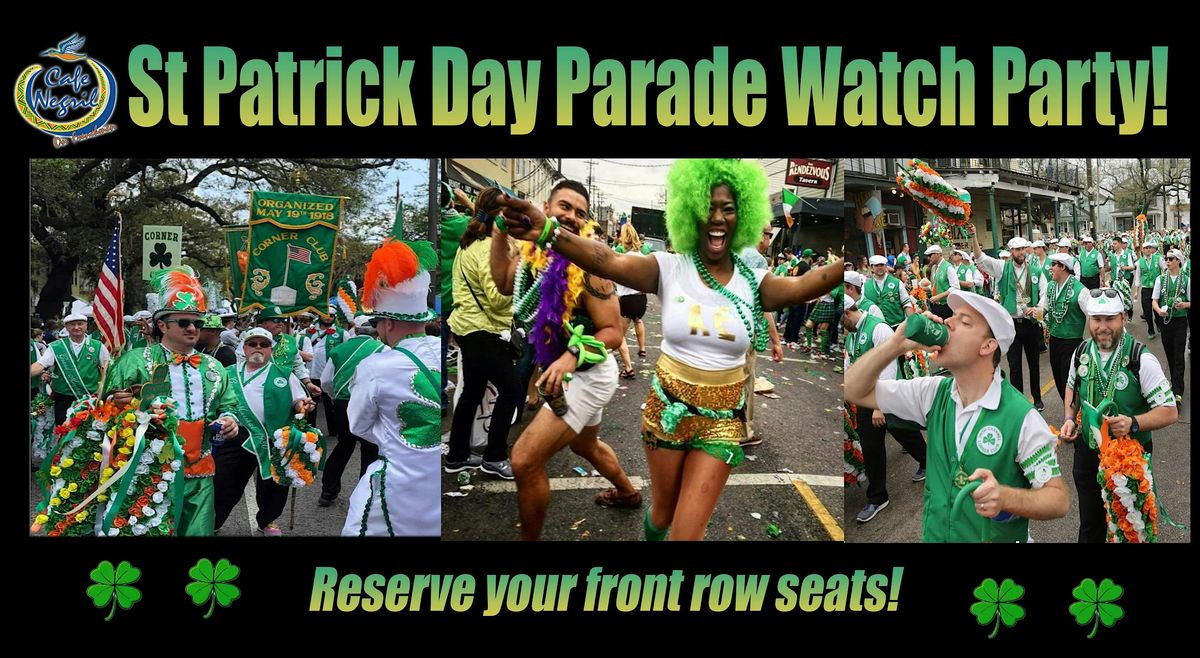 Join us at Café Negril, located directly on the parade route, for a special St. Patrick’s Day Watch Party featuring reserved seating along Frenchmen Street as the parade rolls by.