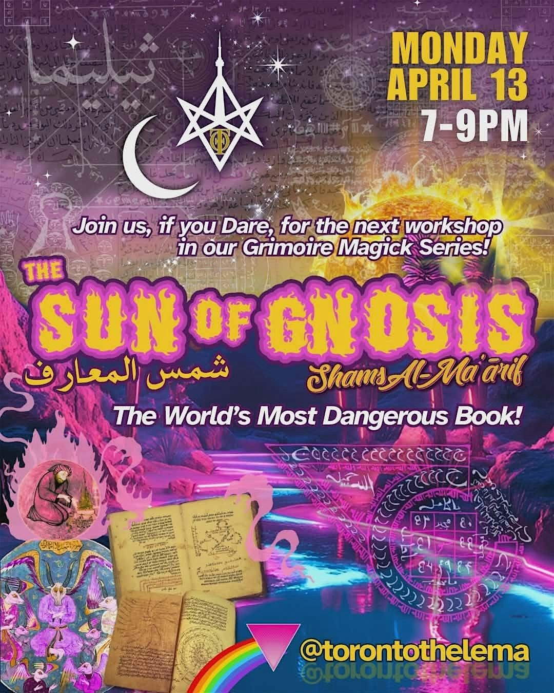 This upcoming workshop hosted by Toronto Thelema dives into the infamous Shams al-Ma'arif, a text whispered about, feared, banned, and relentlessly sought after. Circulating in multiple recensions and bearing titles variously translated as The (Great) Sun of Knowledge(s) and The Subtleties of Elevated Things, it resists any single fixed form.