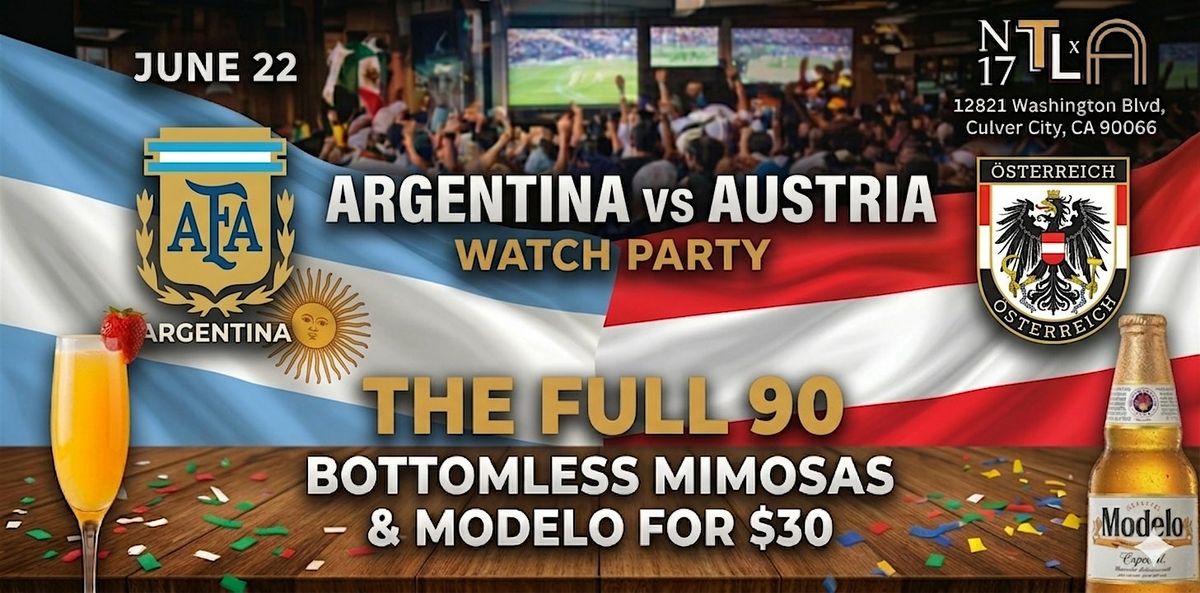 Secure your seat now for what promises to be one of the most electric World Cup 2026 watch parties in LA. Be there as the defending world champions Argentina face off against the high-intensity tactics of Austria in a massive Group J showdown. With Lionel Messi and "La Albiceleste" taking on Ralf Rangnick’s disciplined "Burschen" in Arlington, the energy at AT&T Stadium will be felt live in Culver City.