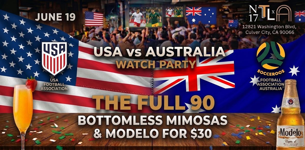 KEYWORDS: World Cup 2026 watch party Los Angeles, FIFA World Cup watch party Culver City, soccer bar Los Angeles, USA vs Australia, watch party LA, USMNT watch party, World Cup 2026 Los Angeles, gastropub Culver City, N17 The Lane, sports bar Culver City, World Cup bar LA, bottomless mimosas World Cup, The Full 90