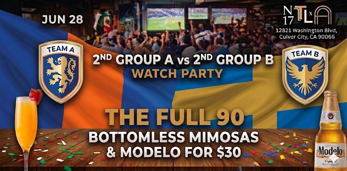 The knockout stage begins. Watch 2nd Group A vs 2nd Group B live at the FIFA World Cup 2026 Round of 32 at N17 The Lane — Culver City's premier soccer bar and one of the best places in Los Angeles for a true World Cup 2026 watch party experience.