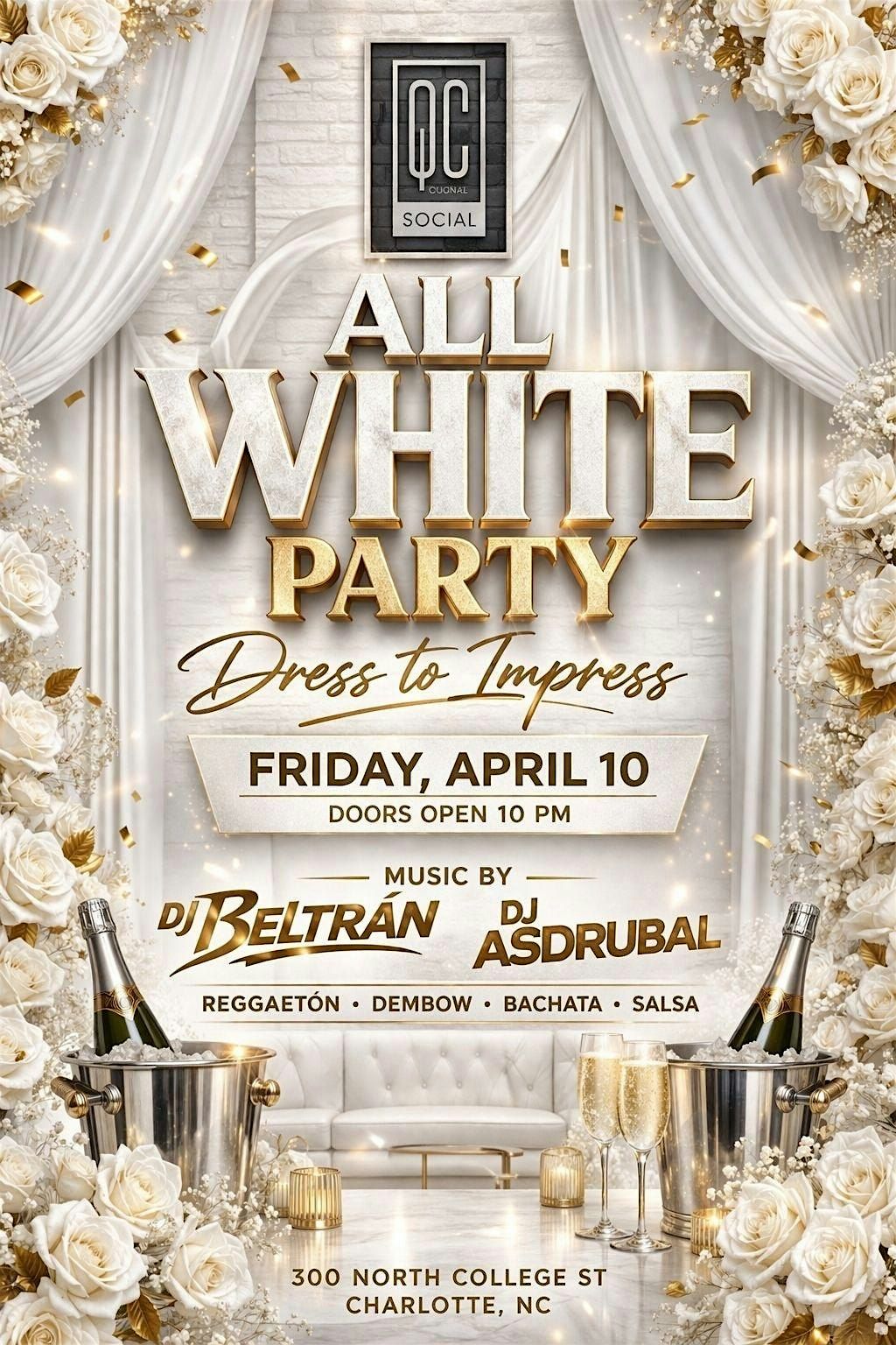 #AllWhiteParty #CharlotteEvents #DressToImpress #LatinVibes #NightlifeCharlotte #PartyInWhite