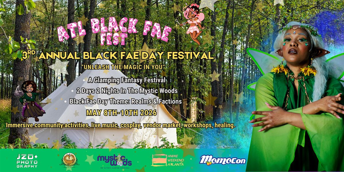 ATL Black Fae Fest invites you to the 3rd Annual Black Fae Day Festival, a 2-day, 2-night immersive Afrofantasy gathering & glamping experience set within the mystic woods of Georgia.