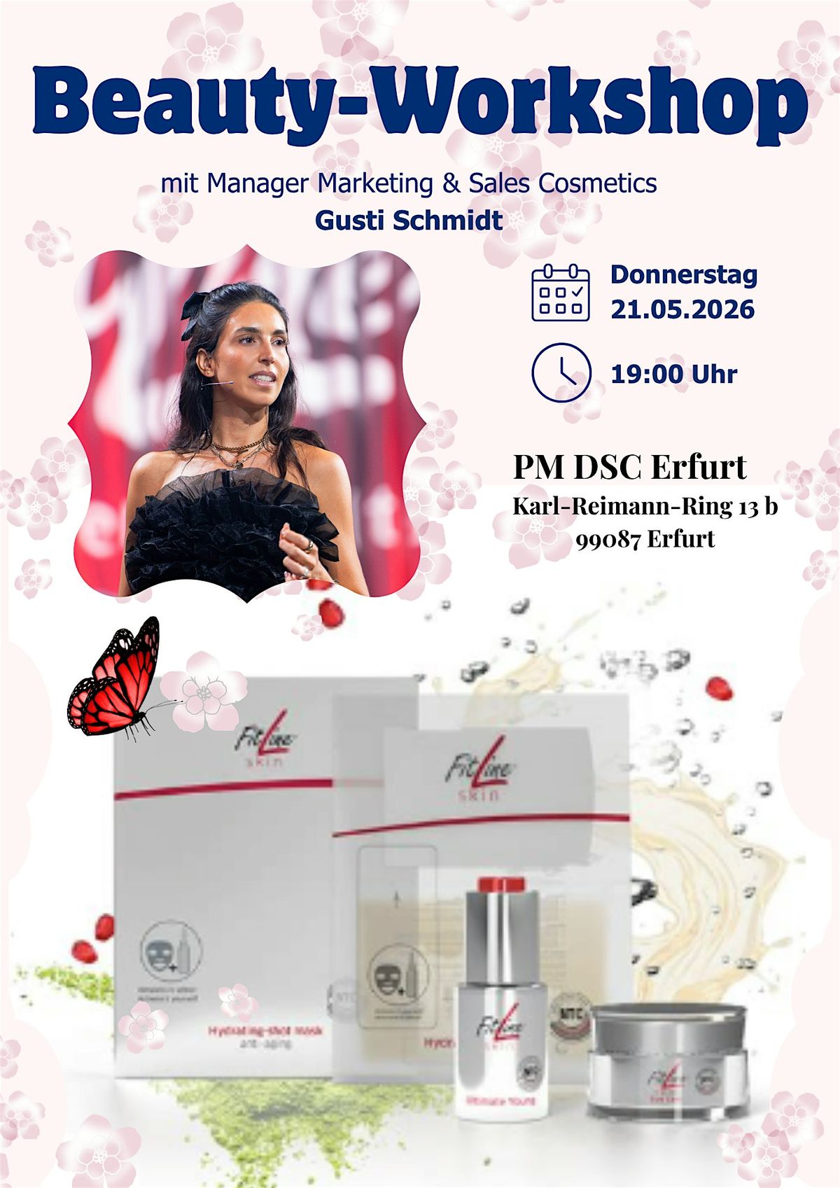 Hey Beauty-Fans! Schnapp dir deinen Termin und sei dabei, wenn Gusti Schmidt spannende Tipps und Tricks rund um das Thema Make-up und Pflege persönlich mit dir teilt. Unser Workshop findet in gemütlicher Runde vor Ort statt – also perfekt, um direkt Fragen zu stellen und neue Looks auszuprobieren. Lass dir diese Gelegenheit nicht entgehen und bring deine Beauty-Skills aufs nächste Level!