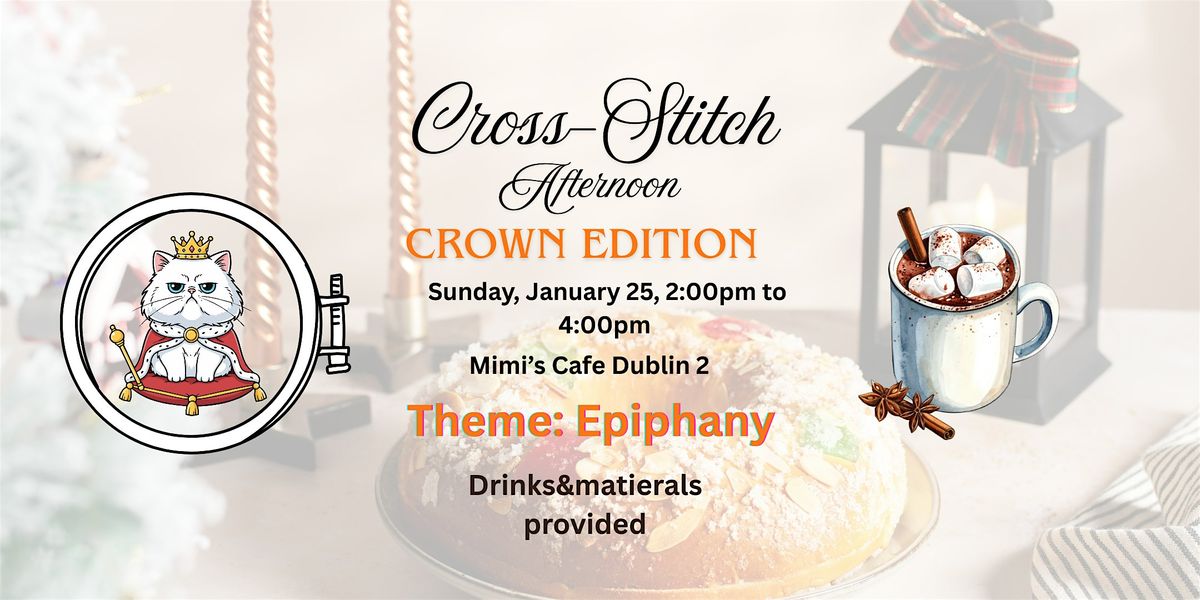 Start the year with something gentle, joyful, and actually doable: cross-stitching your own Epiphany-inspired crown motif, in the warm glow of Mimi’s Café.