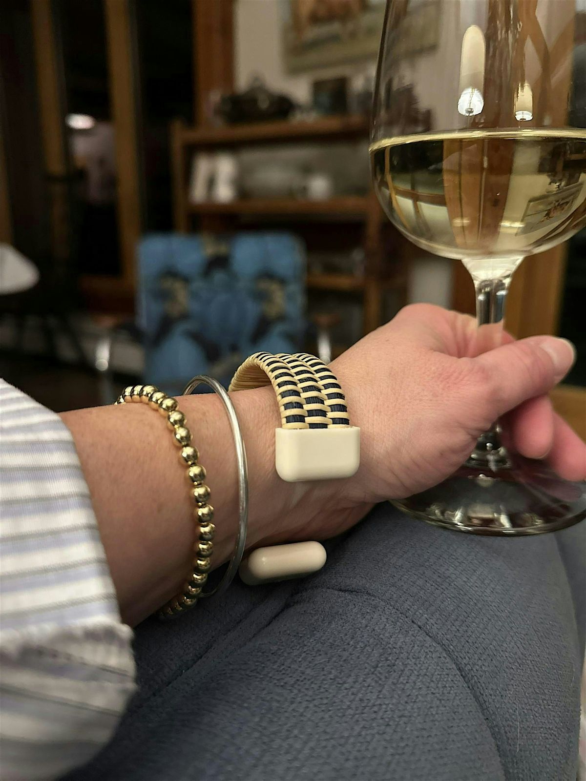 Join us for an evening of weaving and wine at Coastal Bubbles & Wine Bar. In this hands-on workshop, you will learn the fundamentals of traditional Nantucket basket weaving and create your own handwoven cuff bracelet.Participants may choose between a classic or slimmer style cuff and will leave with a finished piece ready to wear. No prior experience is necessary — just bring your curiosity and enjoy the process.