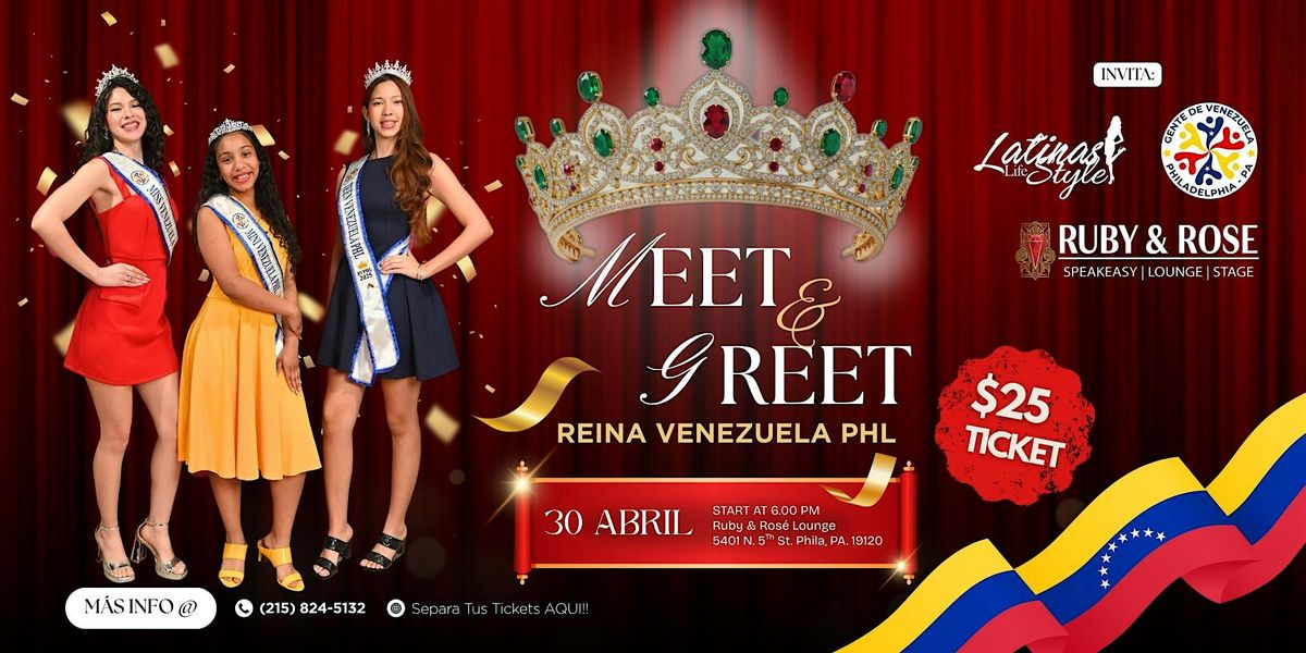 Te invitamos a compartir un Meet & Greet exclusivo con las candidatas y reinas de Reina Venezuela PHL, un encuentro especial para celebrar la belleza, el talento y la elegancia de nuestra comunidad. Será una velada perfecta para disfrutar, conectar, tomarte fotos, apoyar a tus favoritas y vivir de cerca toda la energía de este gran certamen.