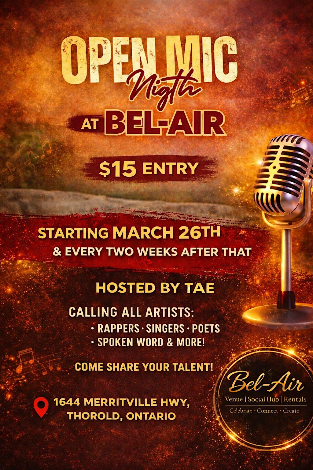 #OpenMicNight #BelAir #ThoroldEvents #LiveEntertainment #SupportLocal