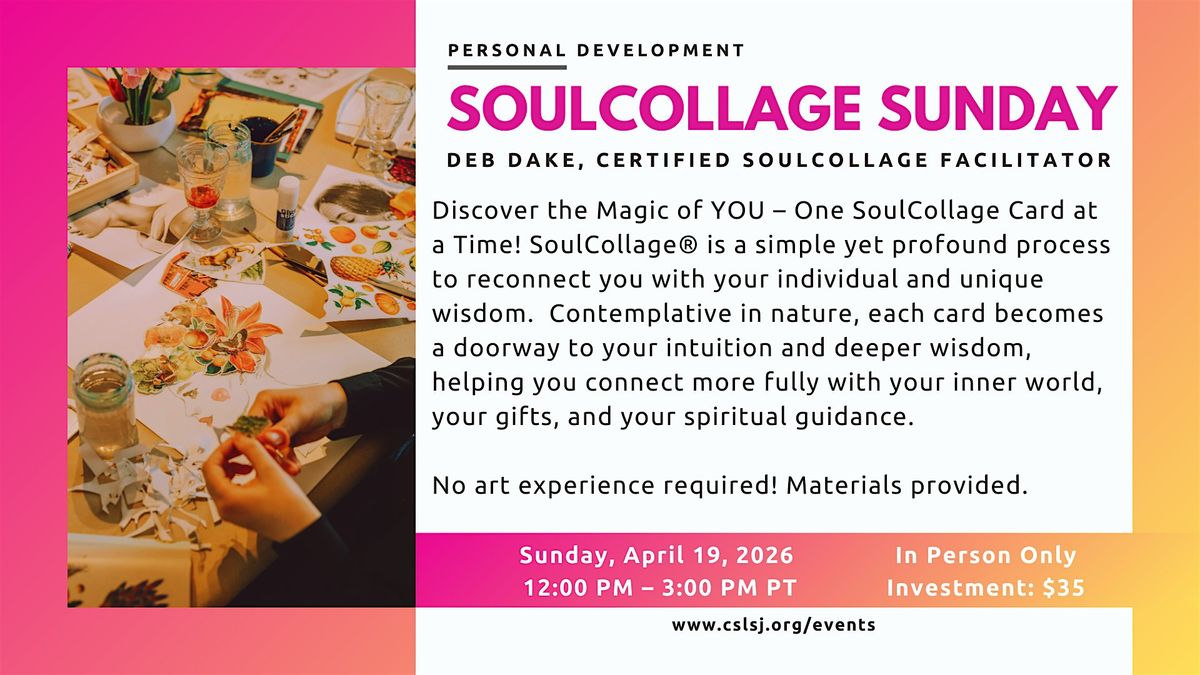 #SoulCollageSunday #CSLSanJose #CreativeSpirituality #PersonalDevelopment #ArtAsHealing #InnerWisdom #NewThoughtCommunity #BayAreaEvents #SoulfulExpression