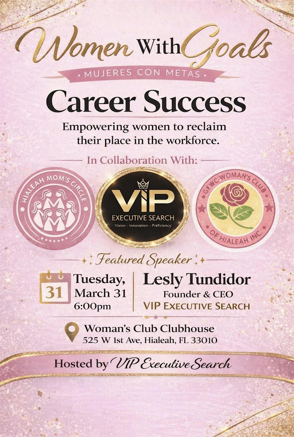 This event is hosted by VIP Executive Search in collaboration with the Hialeah Mom’s Circle and the GFWC Woman’s Club of Hialeah.