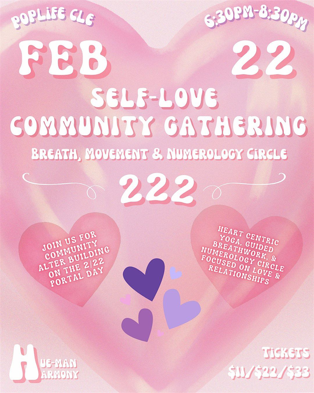 - HueMan Harmony is an experience that will be your guide, as you balance the mind, body, and soul conncetion. Cultvated in a safe and accessible space for community healing. We offer beginner friendly yoga, guided meditations, sound healing, chakra alignment, and more! Through a variety of these healing modalities, come and experience a renewed sense of harmony and vitality. Held in the beautfiul oasis that is PopLife.