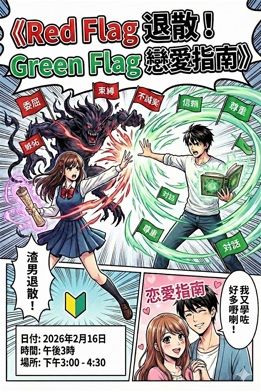 《Red Flag 退散!Green Flag 戀愛指南》- ✨ 深度實體工作坊|投資自己嘅關係課題 ✨