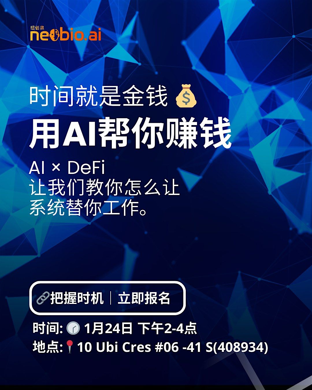 时间就是金钱,创造属于你的财务自由。把握机会,让我们教你怎么用AI帮你赚钱。About this Event