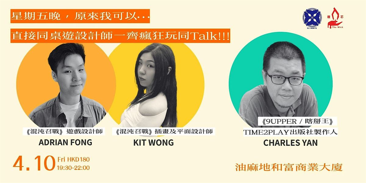 你有冇試過玩完一個桌遊,可以直接問設計師「你係點諗出嚟?第一個版本係乜嘢樣?」4月10日星期五晚,香港原創桌遊《9UPPER 瞎掰王》同《混沌召戰》設計師親身到場——前者係合作打Boss卡牌遊戲,後者係一本正經講大話的派對遊戲。坐係你對面,同你一齊玩,邊玩邊Talk。