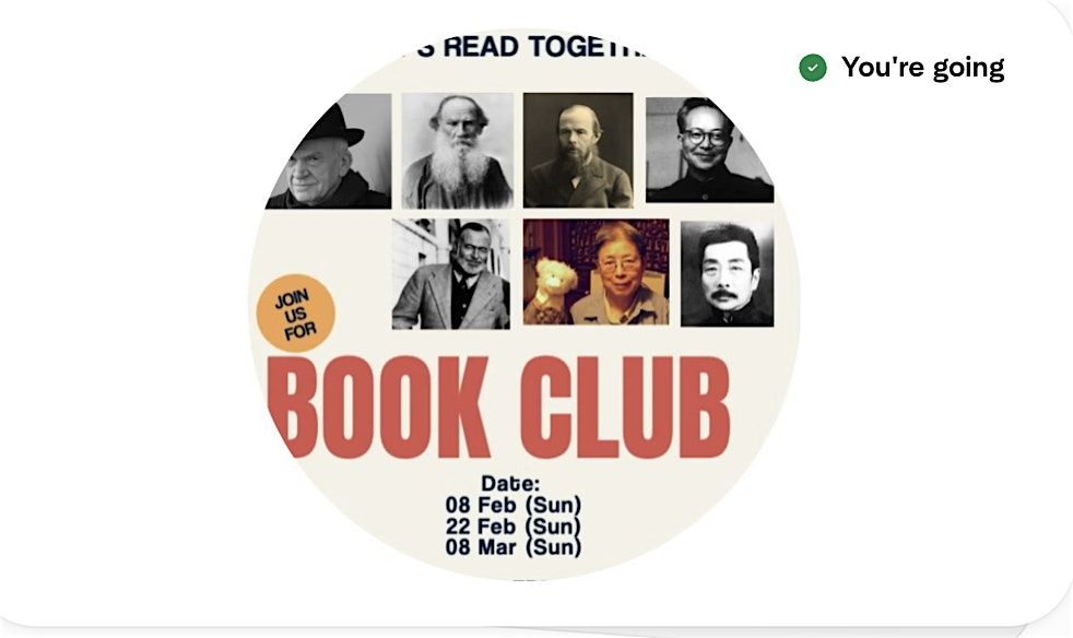 We sincerely invite you to our book club member meetup on 22 Feb, 2:30-4:30 PM. Please bring a book you've recently read (in Chinese or English, it's fine), and share your thoughts and feelings about it. This will be a relaxed and enjoyable environment for us to exchange ideas and inspire each other.