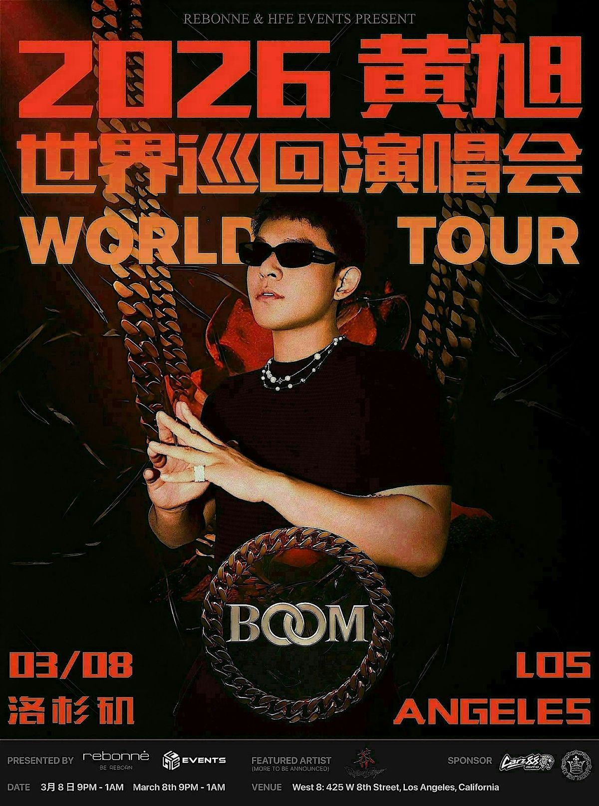 HFE EVENTS & REBONNE PRESENT黄旭BOOM世界巡回演唱会洛杉矶LA站