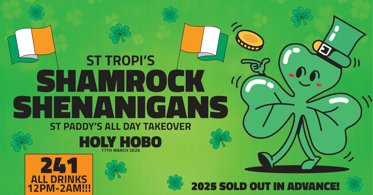 ST TROPI PRESENTS SHAMROCK SHENANIGANS @ HOLY HOBO! 🍀🇮🇪🍻Levelling up the BOOZIEST day in the calendar with our JESMOND DAY PARTY! // 12PM-2AMTropiloco expanding onto your Jesmond doorstep for the very first time, this will be a day that goes down in the books and we’re all here for it!2-4-1 on all drinks made from 12PM-2AM keeping things super affordable in the true Hobo style you’re used to 🕺This legendary event will FULLY SELL OUT so here’s your big heads up!Go get ‘em! XoDisclaimer: