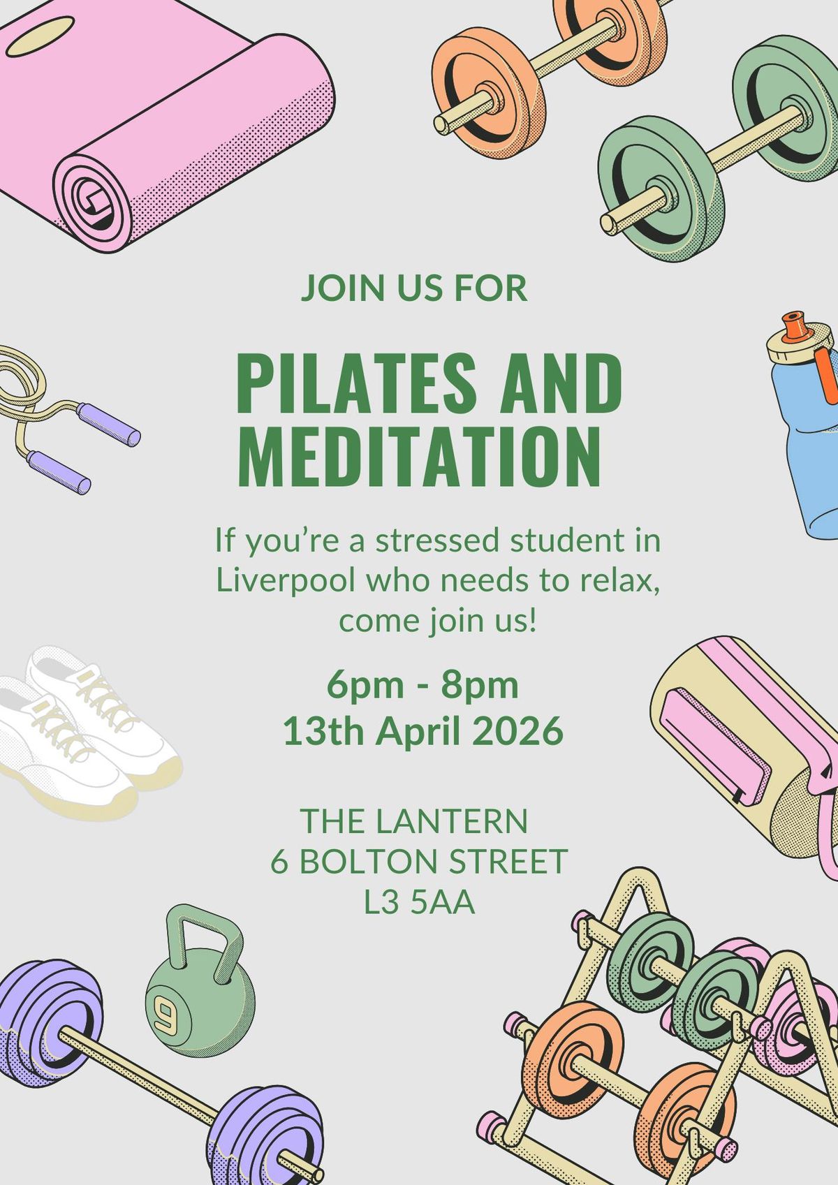 Pilates and Meditation Evening!Come join us for a instructor guided, beginner Pilates and meditation session in Liverpool ✨