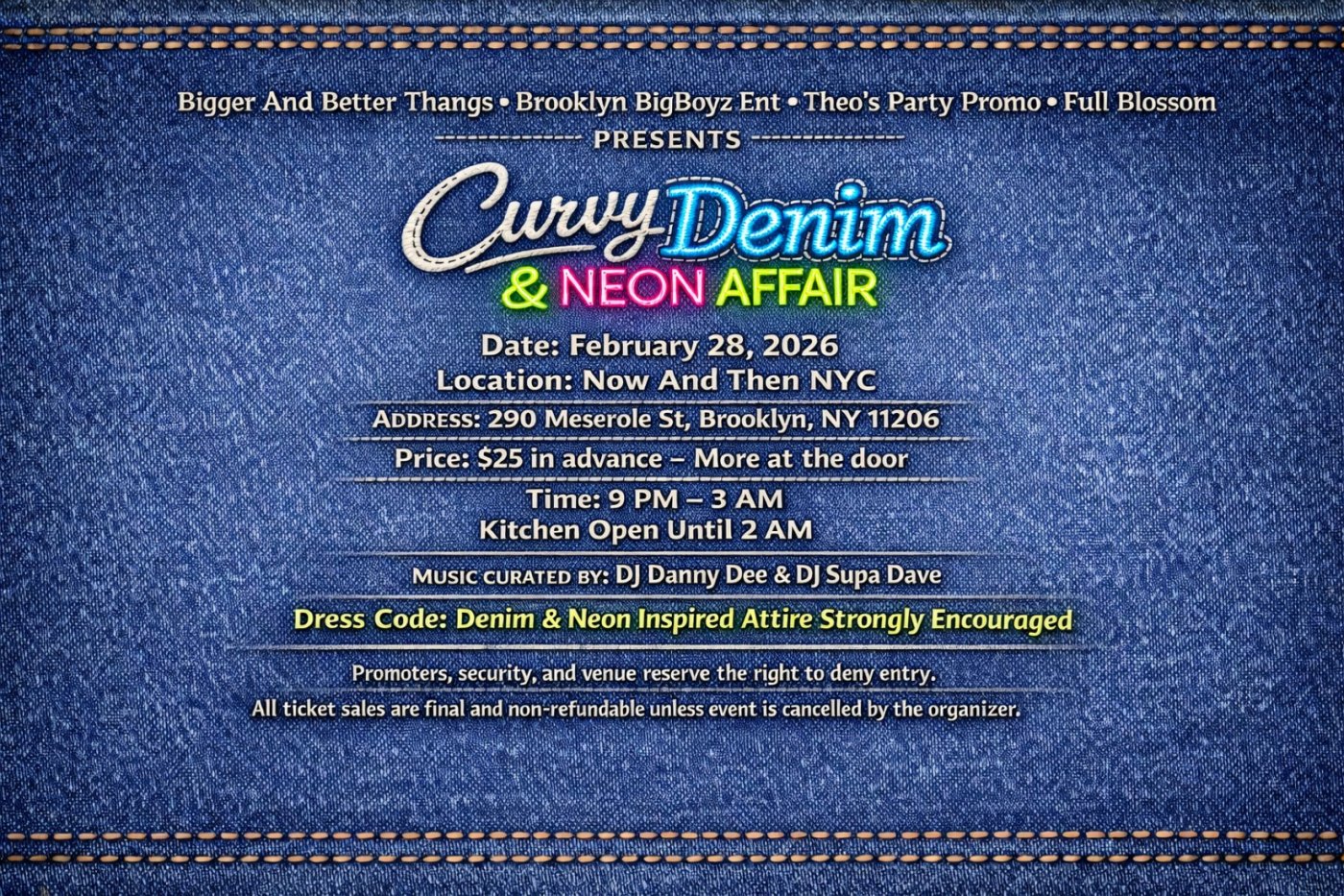 Brooklyn, get ready! This one is for the grown, sexy, confident crowd ready to step out in style. Rock your denim, glow in neon, and enjoy a night full of vibes, dancing, laughter, and unforgettable memories ๐๐