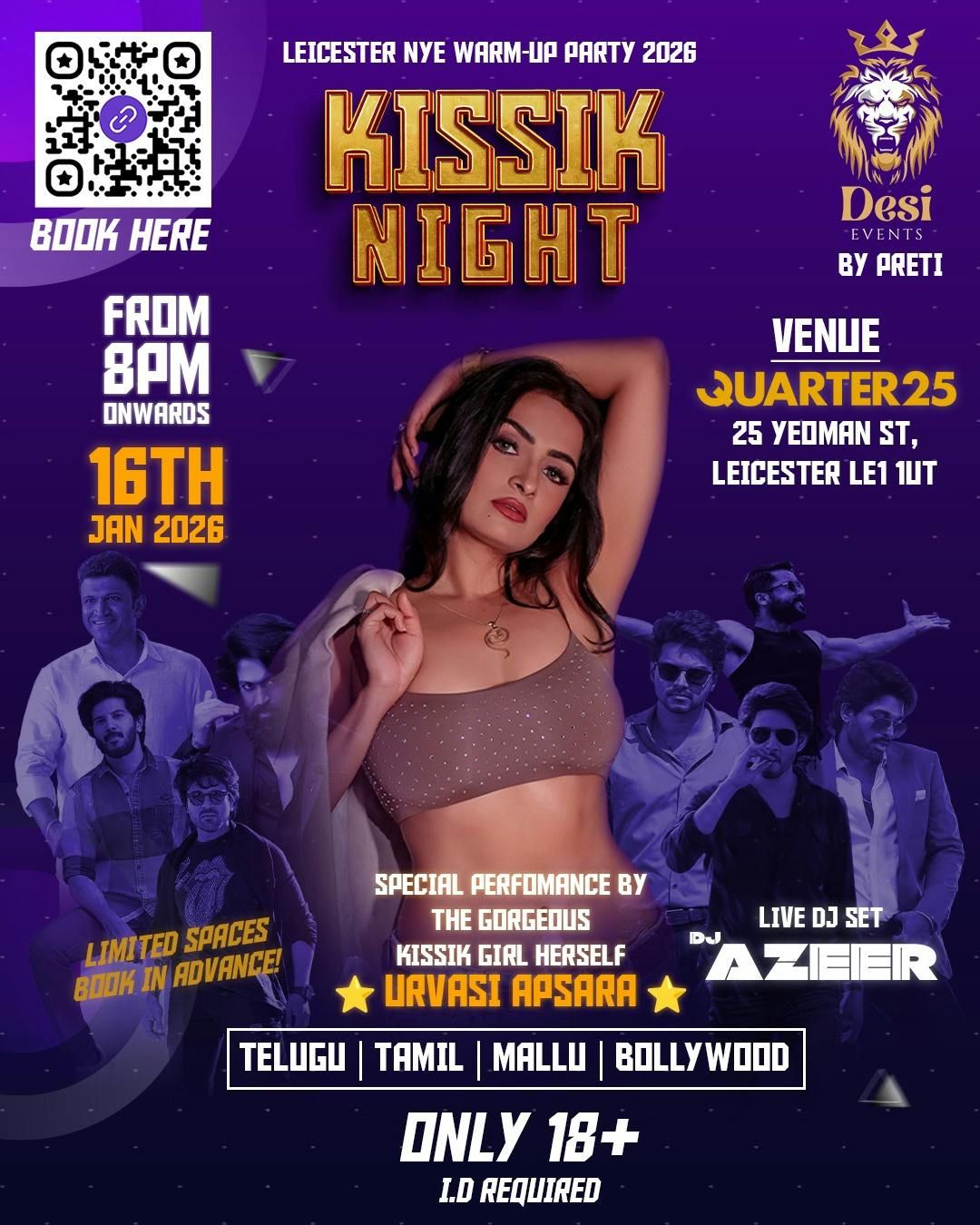 π DESI EVENTS PRESENTS β KISSIK NYE WARM-UP PARTY! π₯Welcoming the New Year in full KISSIK style with the sensational Kissik Girl herself β Urvasi Apsara π and the electrifying DJ Azeer spinning live!