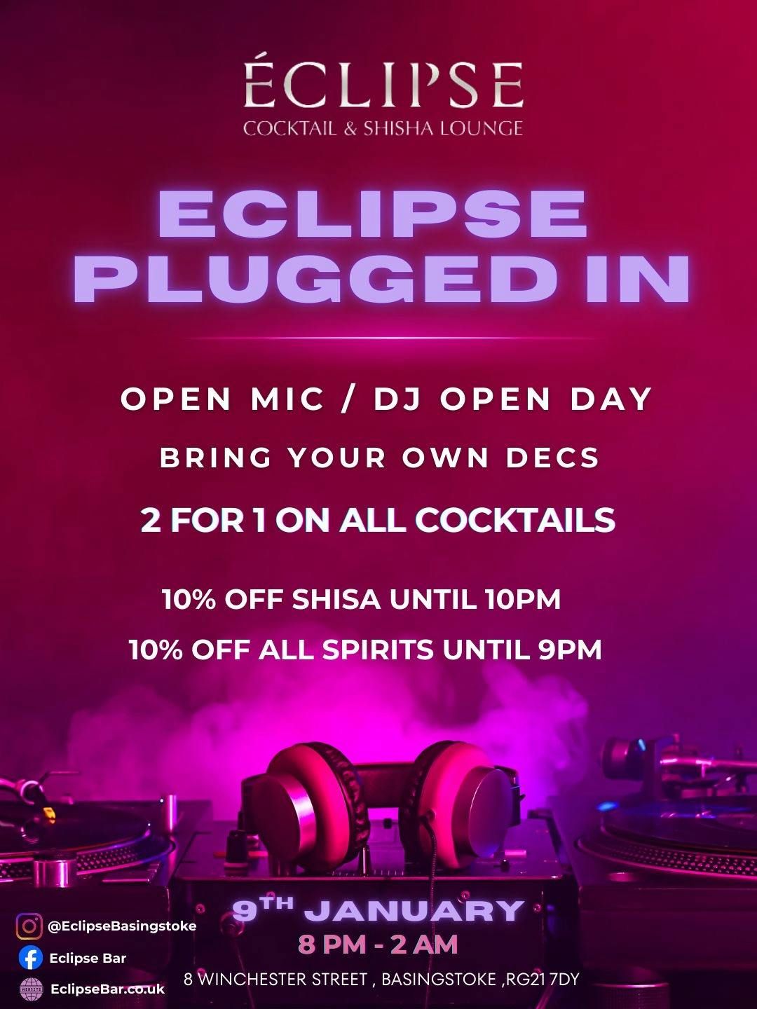 Eclipse Plugged In is your chance to take control of the decks and showcase your sound. Whether you’re an upcoming DJ, an open-mic performer, or just here for the vibes, this is a night built for talent, creativity, and community.