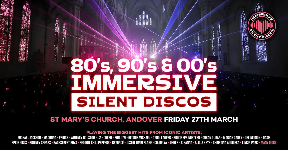 π§ Immersive Silent Discos Presents: 80's, 90's & 00's in St Maryβs Church, AndoverStep inside one of Andoverβs most striking historic landmarks as we transform St Maryβs Church into an unforgettable retro party setting! With its breathtaking architecture, atmospheric lighting and awe-inspiring ceilings, this magnificent church becomes your immersive dance arena for the biggest hits of the 80s, 90s & 00s.